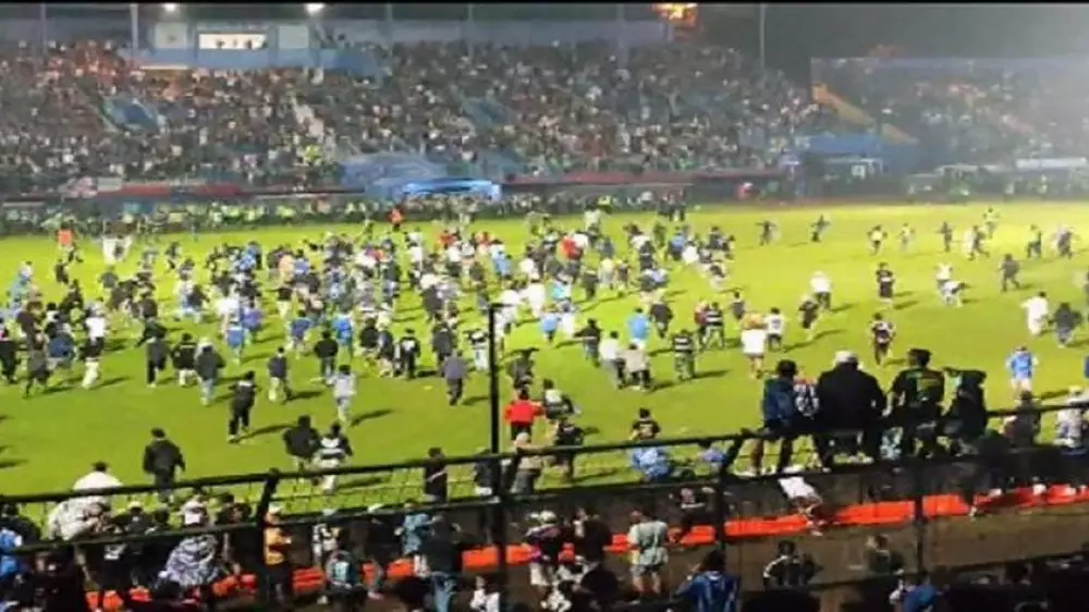 Сообщается, что люди, в том числе и находившиеся на трибунах, запаниковали и попытались покинуть стадион, вследствие чего образовалась давка. В результате погибли 127 человек, среди которых есть женщины и дети. Около 180 человек были госпитализированы.