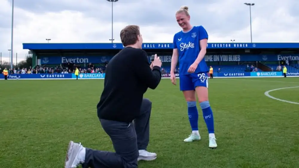 Футболистке "Эвертона" сделали предложение прямо на поле, передает Tengri Sport.