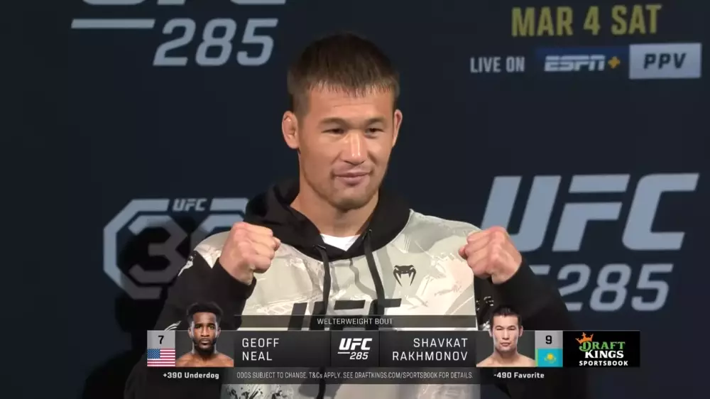 Новостной телеграм-канал "Спорт Шредингера" обратил внимание на символический момент выступления казахстанского файтера Шавката Рахмонова на пресс-сконференции перед боем с американцем Джеффом Нилом на турнире UFC 285 в Лас-Вегасе, передает Tengri Sport.