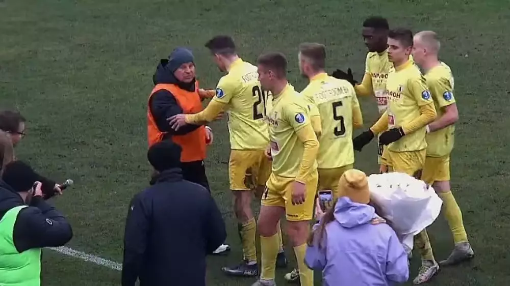 Серьезного конфликта удалось избежать - стюард покинул эпицентр событий после агрессивного поведения футболистов. Шубович получил желтую карточку.