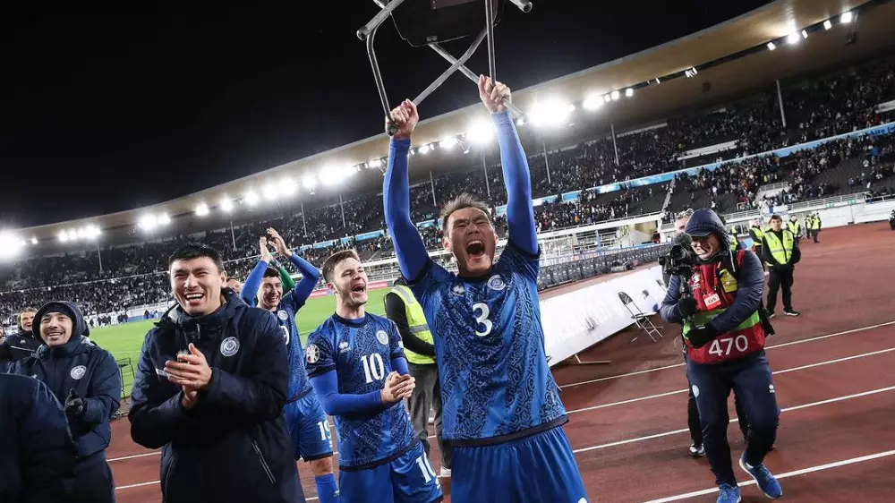 Сборная Казахстана по футболу совершила сенсационный камбэк в отборочном матче чемпионата Европы против сборной Финляндии, а защитник команды Нуралы Алип экспрессивно отпраздновал победу.