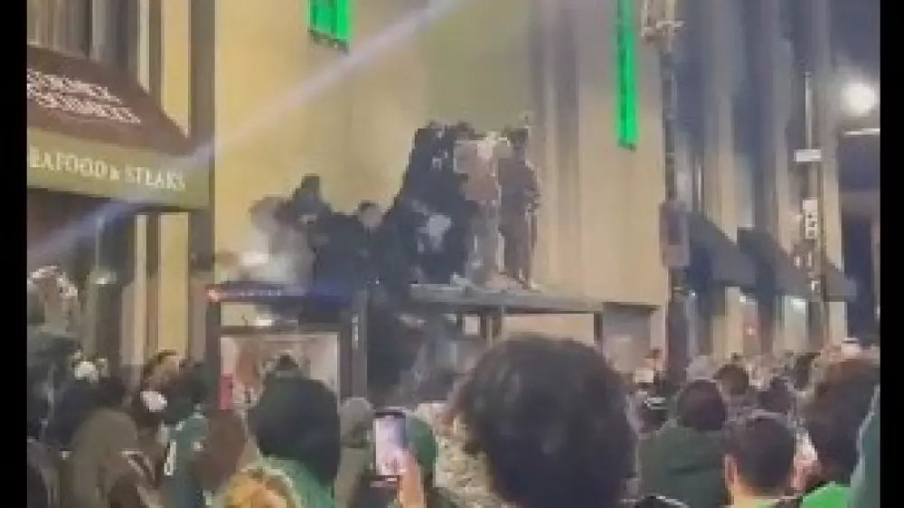 Фанаты клуба "Филадельфия Иглз" рухнули с крыши автобусной остановки во время празднования выхода своей команды в финал плей-офф НФЛ, передает Tengri Sport.