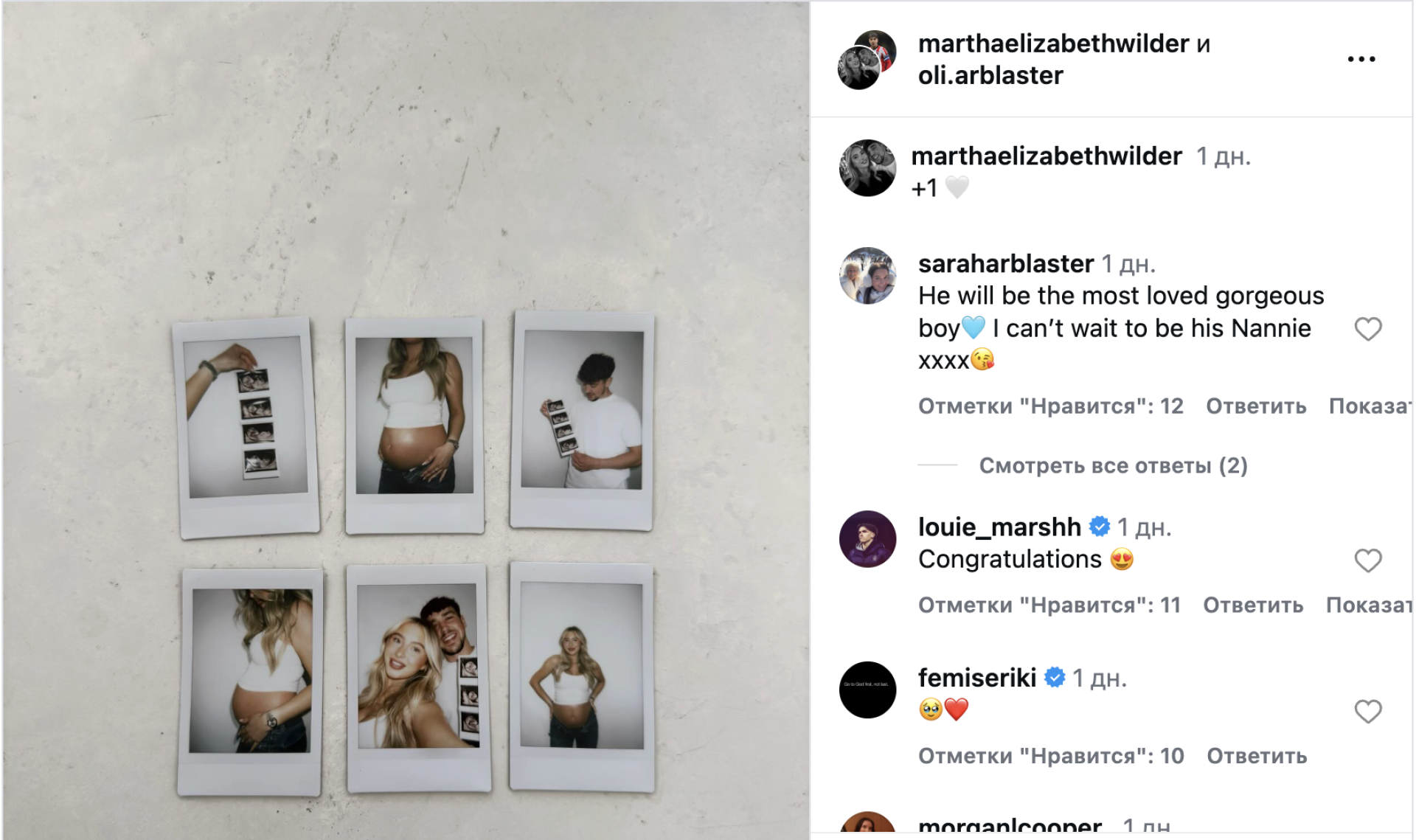 В комментариях к посту много поздравлений будущим родителям, но среди них нет реакции тренера Арбластера и будущего деда.