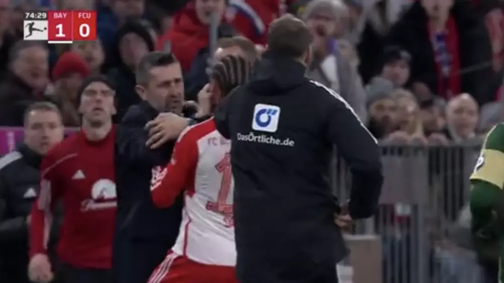 На 75-й минуте встречи мяч покинул поле недалеко от тренерской скамейки "Униона", и Белица решил не отдавать его игроку "Баварии". Сане высказал тренеру свое недовольство и попытался отнять мяч, после чего Белица набросился на футболиста и ударил его.