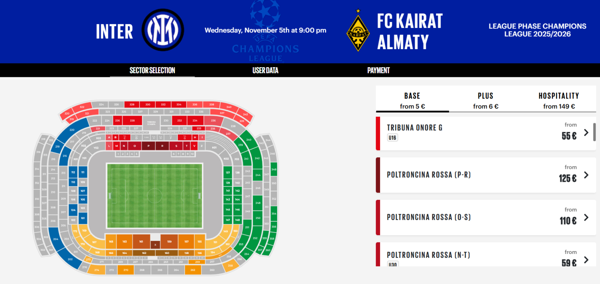 Все билеты на игру, по данным официального сайта ФК "Интер", еще не выкуплены, ажиотажа нет, к продаже доступны даже самые бюджетные - за 5 евро (3100 тенге).