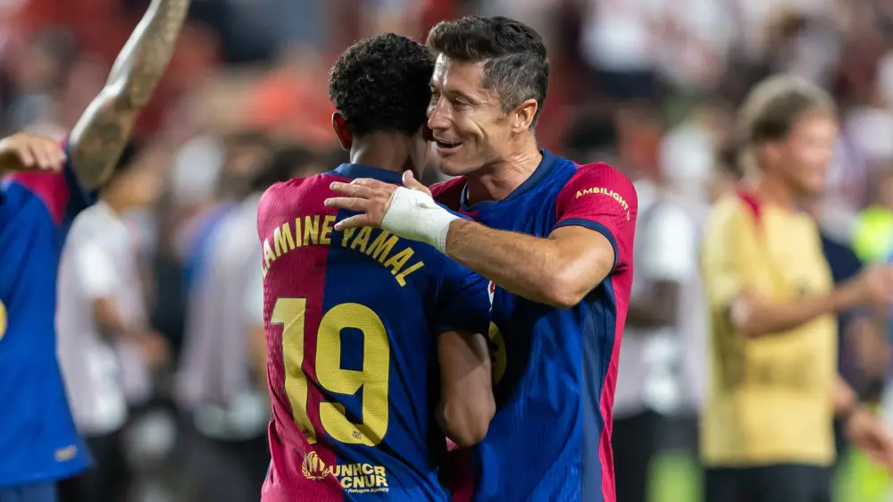 Во втором тайме, на 53-й минуте, Левандовски оформил дубль. Кунде перехватил мяч на своей половине, а Ямаль, продвинувшись на 35-40 метров, отдал передачу на Кунде, который быстро сыграл с Педри. Вернув пас, Кунде сильно прострелил с правого фланга, мяч прошел мимо всех и, юркнув мимо вратаря, оказался у Левандовски, которому оставалось лишь подставить бедро, чтобы мяч срикошетил в сетку (1:3).