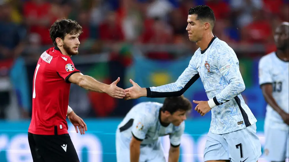Лидер сборной Грузии по футболу стал лучшим игроком матча против сборной Португалии, а в сети вспомнили, как он фанател от лидера португальцев Криштиану Роналду, передает Tengri Sport.