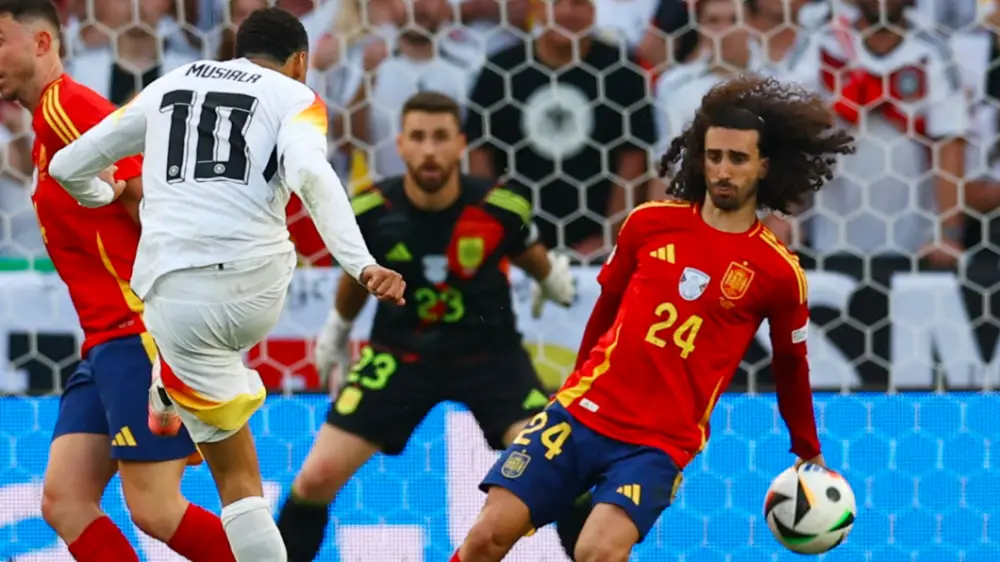 Среди демонстрируемых примеров был эпизод, похожий на ситуацию в матче четвертьфинала между сборными Испании и Германии (2:1), когда на 106-й минуте игры полузащитник бундестим Джамал Мусиала попал мячом в руку испанскому защитнику Марку Кукурелье. Однако главный судья встречи Энтони Тейлор не назначил пенальти в этом эпизоде.
