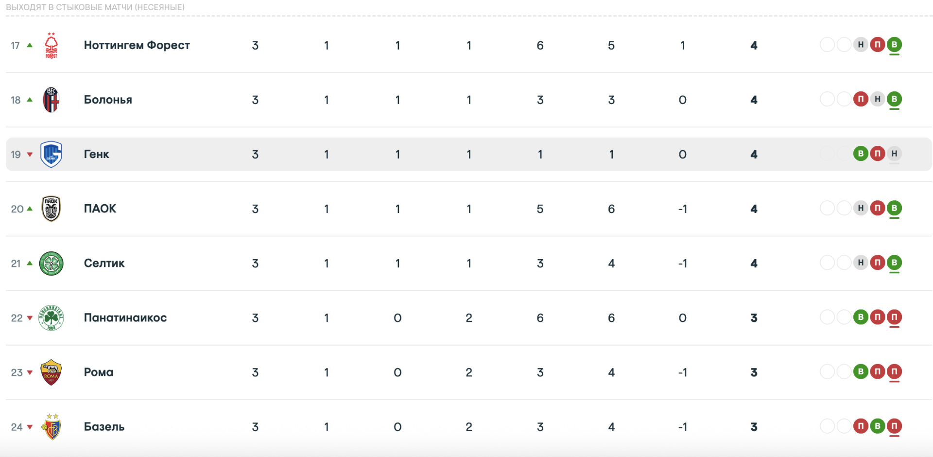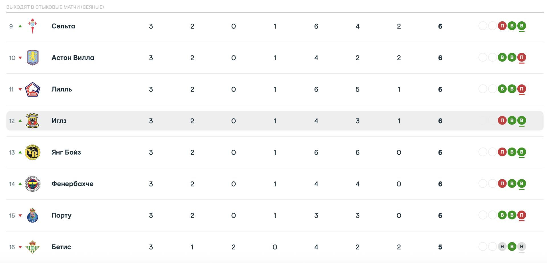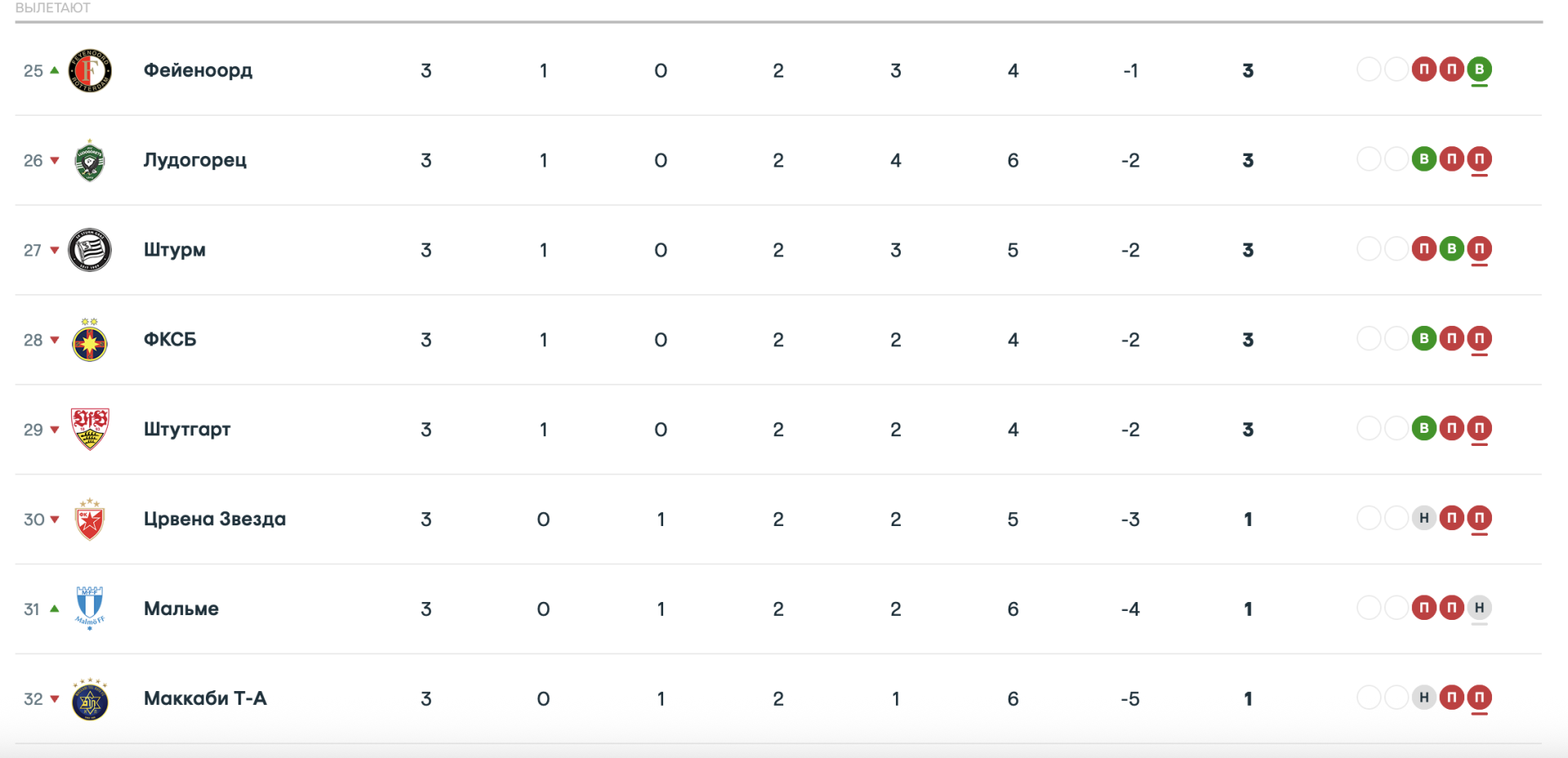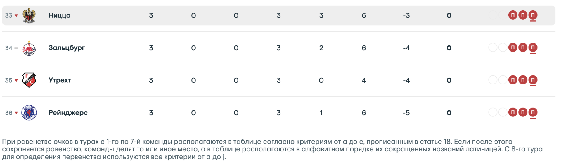 Таблица Лиги Европы