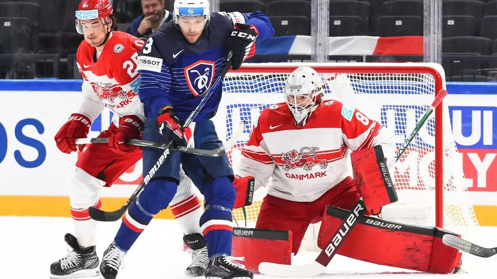 Во втором туре мирового турнира французские хоккеисты проигрывали 0:2 в игре с Данией, но сумели перехватить инициативу.