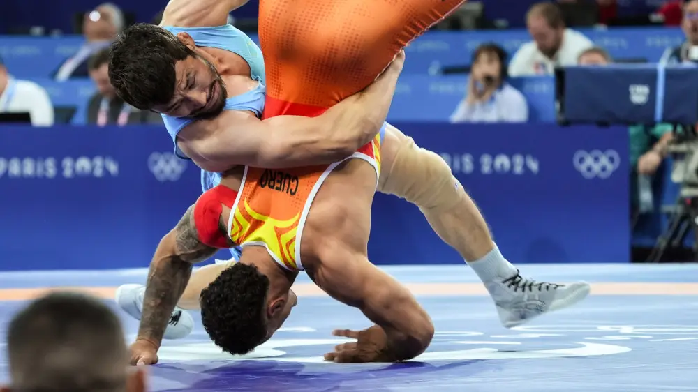 Казахстанский борец стартовал с победы над чемпионом Европы на ОИ-2024.