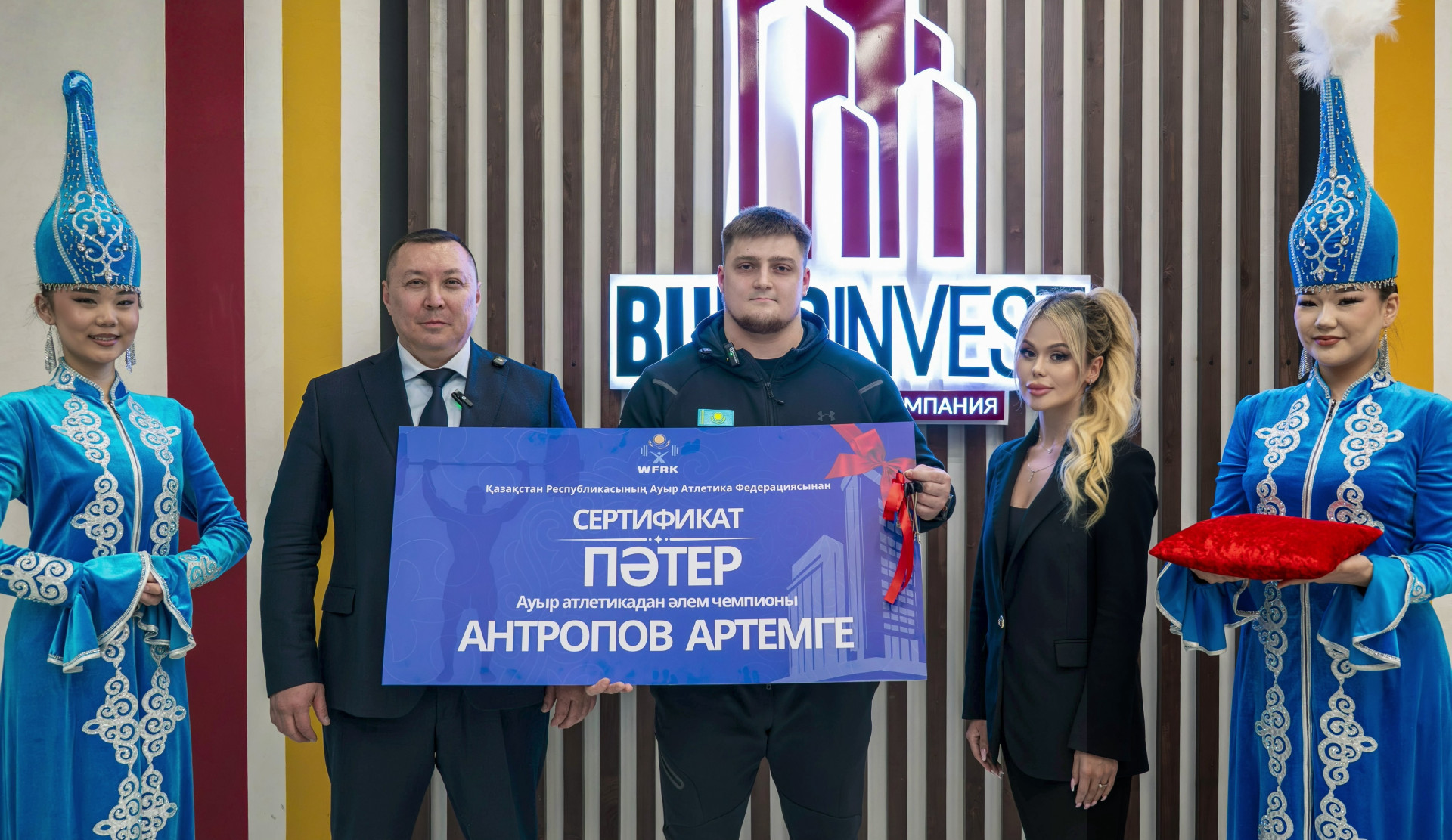 Чемпиону мира по тяжелой атлетике Артему Антропову вручили ключи от квартиры, передаёт корреспондент Tengrinews.kz.