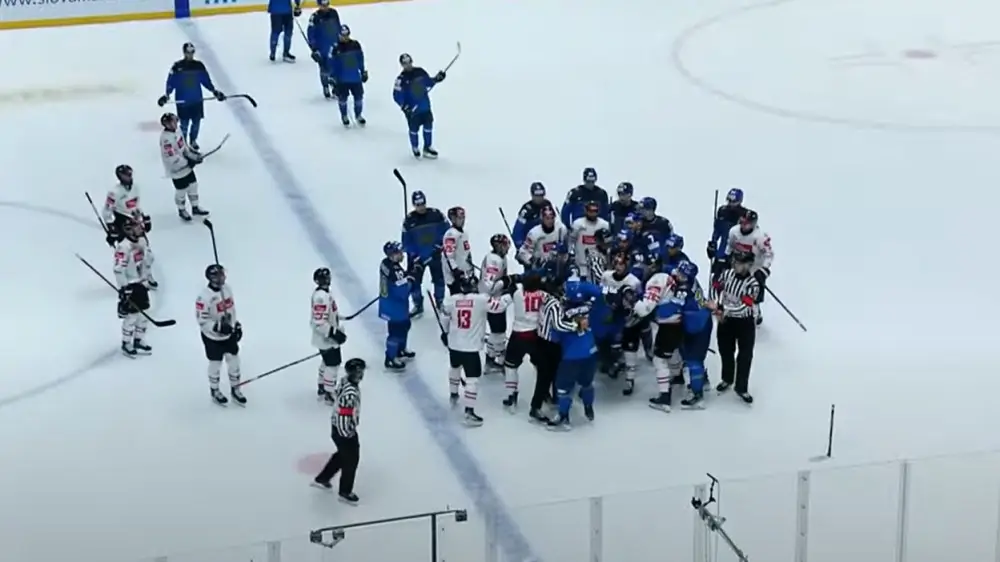"После финальной сирены хоккеисты что-то не поделили между собой и устроили массовую потасовку. Но благо, они быстро успокоились и разошлись по своим сторонам", - говорится в материале.