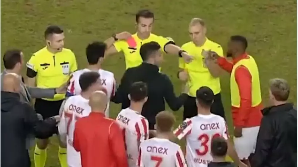 Футболисты турецкого клуба пытались высказать судейской бригаде свои претензии после проигранной игры с "Фенербахче" (1:2), но 34-летний специалист остановил подопечных.