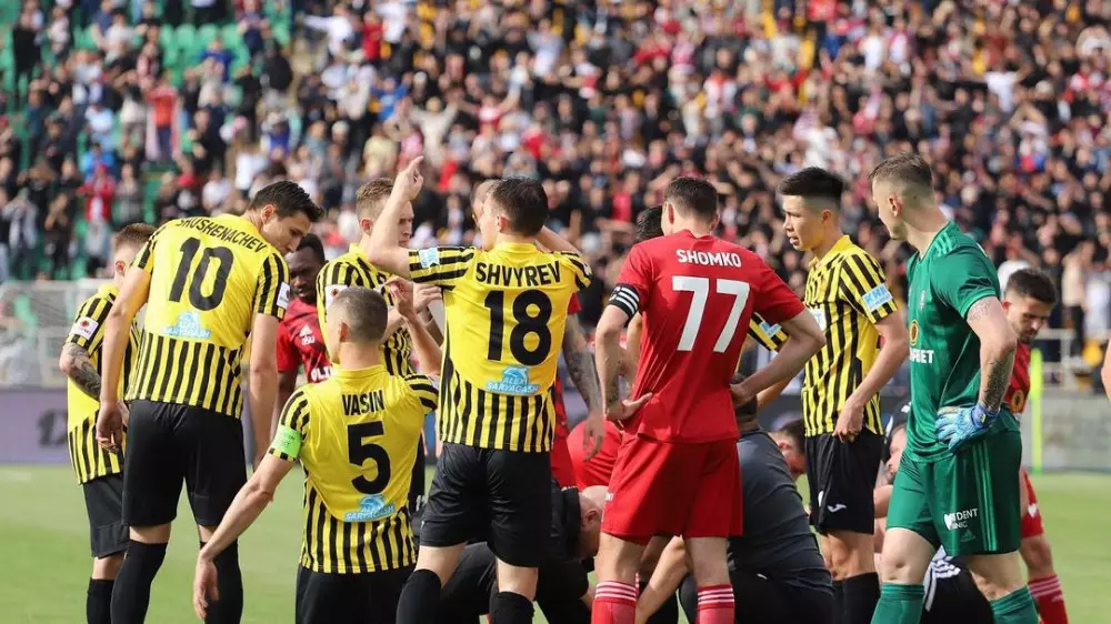 Инцидент произошел в матче 9-го тура КПЛ - Буранчиев потерял сознание после столкновения с нападающим "Актобе" Элдером Сантаной.