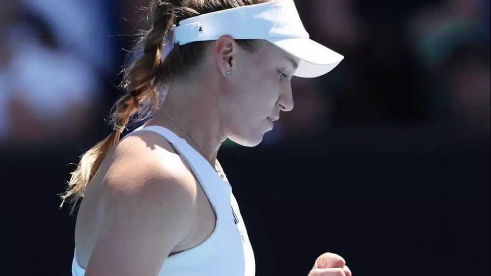 В четвертьфинале турнира "Большого шлема" Рыбакина обыграла в двух сетах Елену Остапенко из Латвии - 6:2, 6:4.