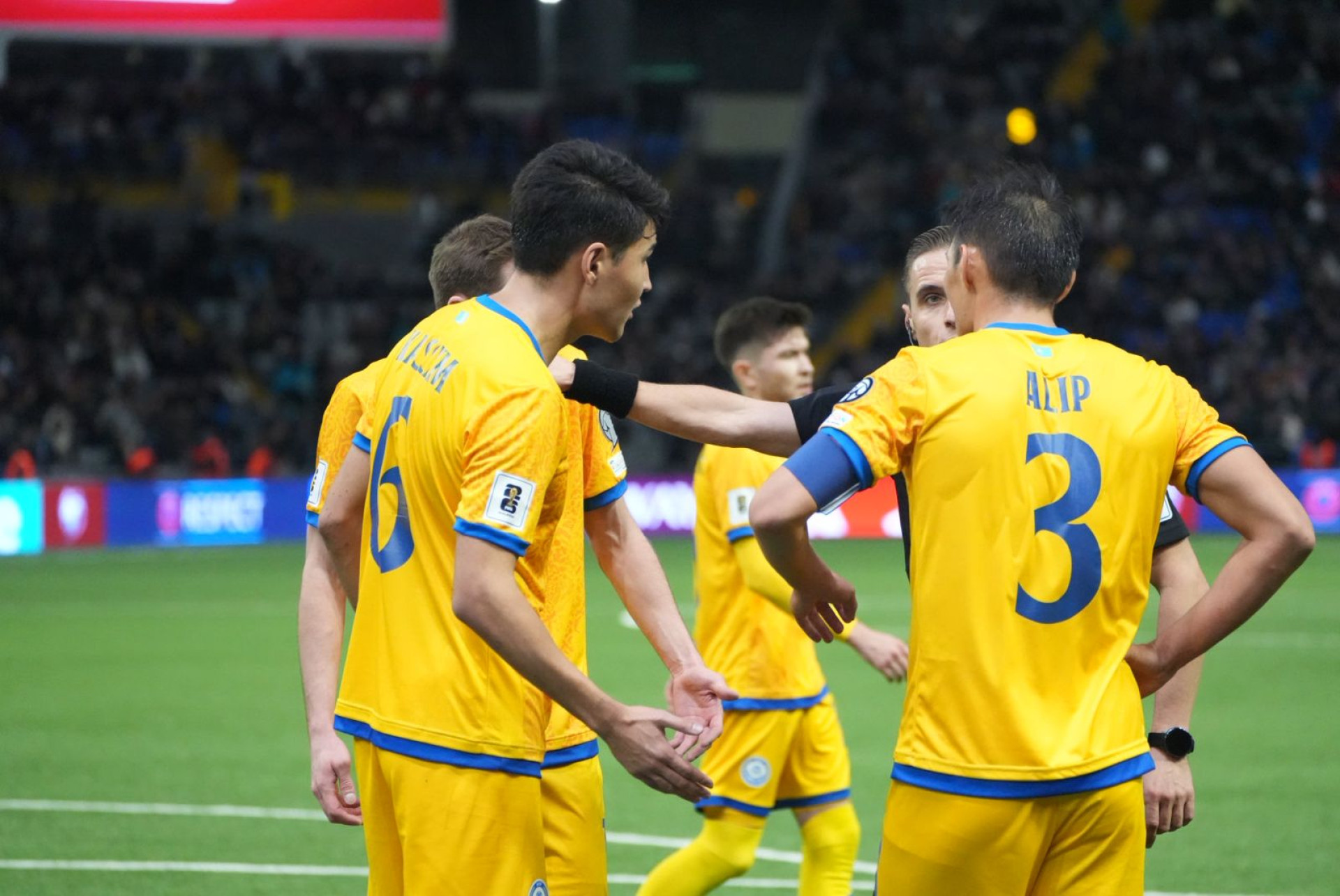 На 79-й минуте полузащитник сборной Казахстана Ислам Чесноков был удален после фола над полузащитником "Манчестер Сити" Жереми Доку.