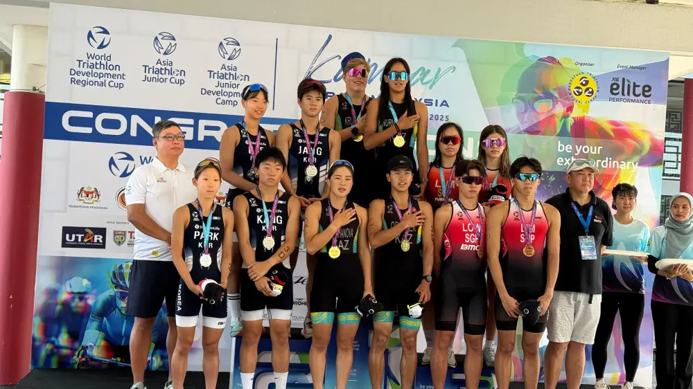 Сборная Казахстана уверенно заявила о себе на международной арене, став главной сенсацией Кубка Азии по триатлону среди юниоров (U19), прошедшего 19–20 июля 2025 года в Кампаре (Малайзия). В командной гонке казахстанцы лидируют, они обогнали Сингапур и Южную Корею, передает Tengri Sport со ссылкой на пресс-службу Казахстанской федерации триатлона.