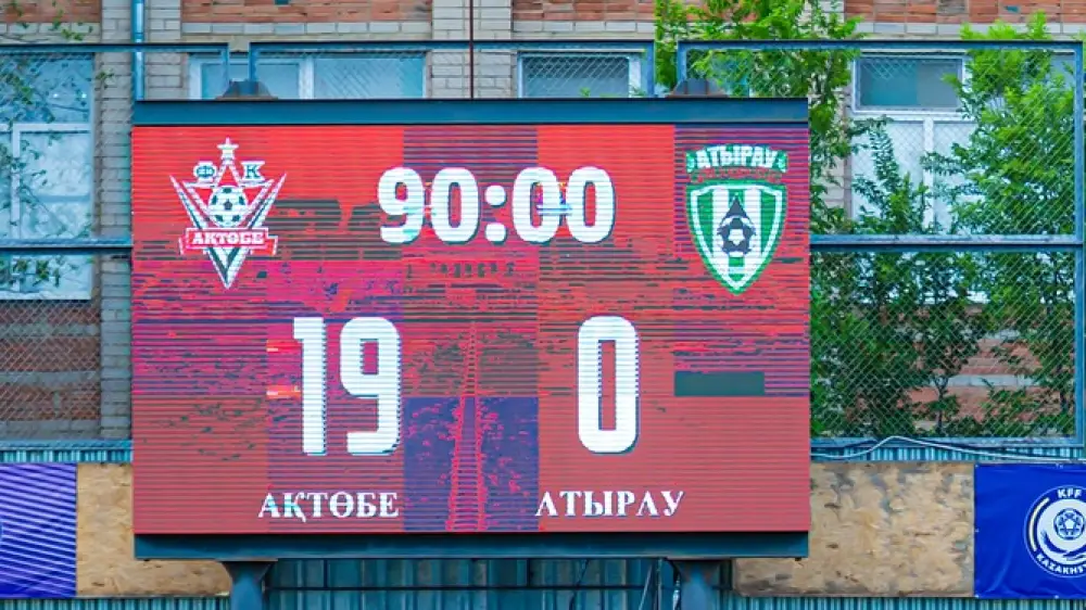 После первого тайма счет был 8:0 в пользу "Актобе", а во втором тайме команда забила еще 11 голов и установила окончательный счет 19:0.