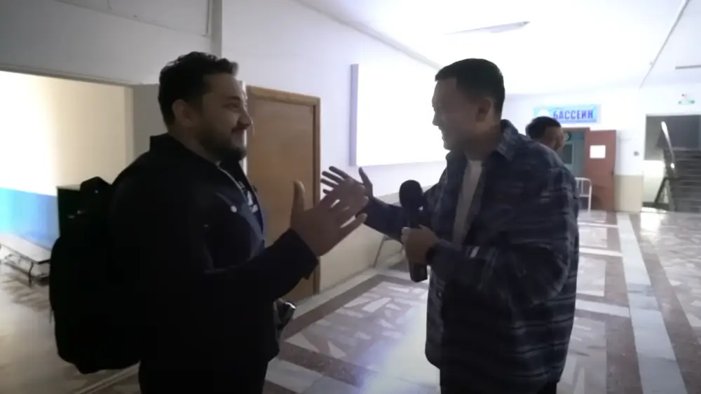 Автор YouTube-канала "Обожаю" встретился с силачом во Дворце культуры Семея. Там между ними состоялся забавный диалог, который начал набирать популярность в социальных сетях.