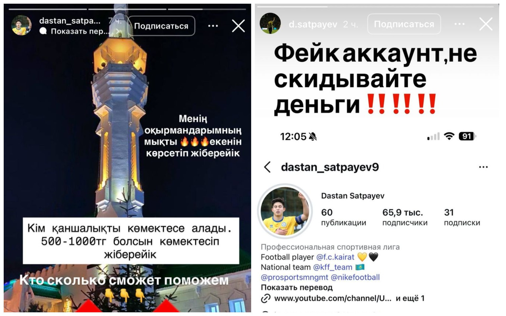 "Фейк-аккаунт, не скидывайте деньги", - написал Дастан.