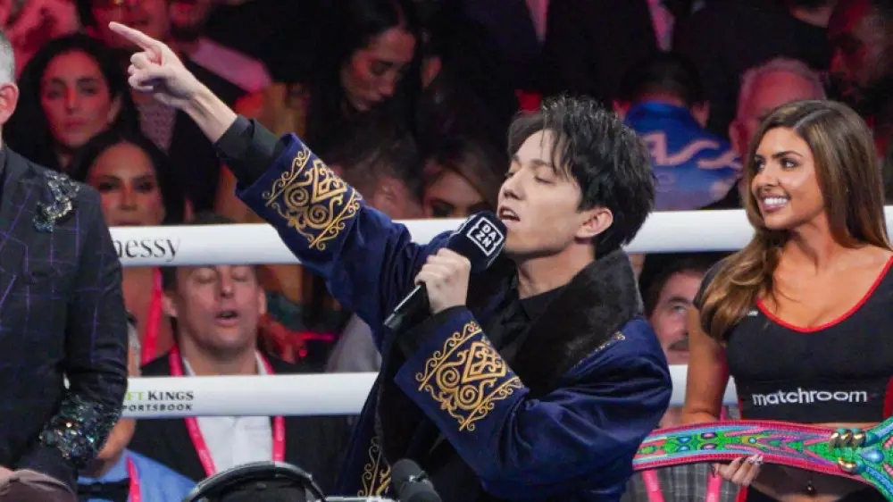 Известный казахстанский певец Димаш Кудайберген исполнил гимн Казахстана на бое между Геннадием Головкиным и мексиканцем Саулем Канело Альваресом.