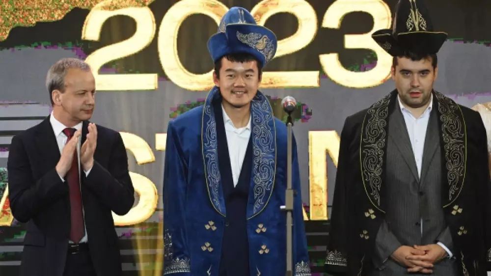 Глава Международной шахматной федерации (FIDE) Аркадий Дворкович вручил шахматную корону победителю - китайскому гроссмейстеру Дину Лижэню. Вместе с чемпионским трофеем победитель получил венок и золотую медаль. Россиянин, получивший серебряную медаль, тут же снял ее. А еще организаторы надели на финалистов казахские национальные чапаны.
