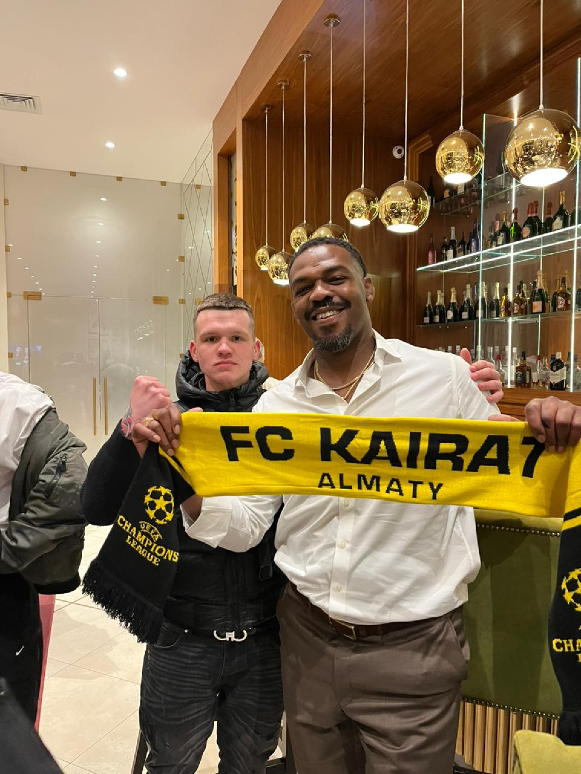 Яков также подготовил для Джонса особый подарок - шарф футбольного клуба "Кайрат". Казахстанец рассказал, что сам является футбольным фанатом и хотел этим жестом порадовать клуб и запомниться Джонсу.