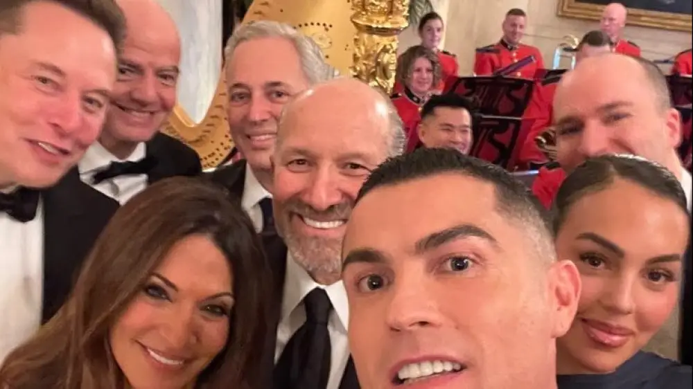 На селфи, которое распространяется в социальных сетях, в один кадр попали Роналду вместе со своей партнершей Джорджиной Родригез, глава ФИФА Джанни Инфантино, основатель Amazon Джефф Безос и предприниматель Илон Маск, а также председатель Совета консультантов президента США по науке и технологиям Дэвид Сакс, который и опубликовал знаковый кадр.