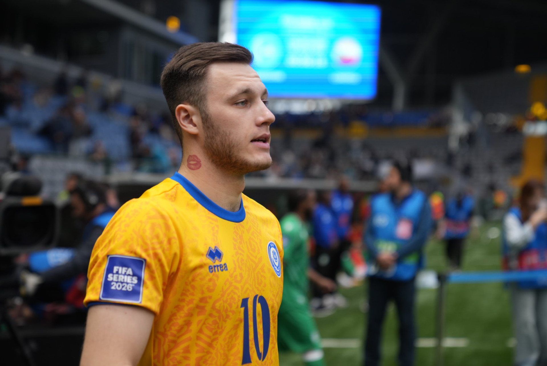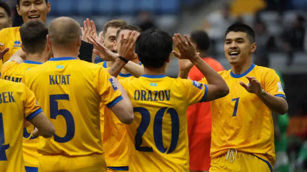 Счёт матча 1:0 в пользу сборной Казахстана.