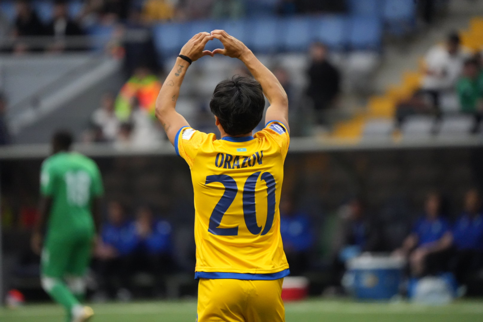 Уже на четвертой минуте после ошибки вратаря соперников Рамазан Оразов забил свой второй гол за национальную команду.