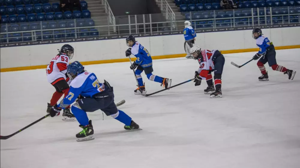 Юные хоккеисты проводят подготовку на профессиональном льду. На трибунах их поддерживают родители. Одной из самых шумных болельщиц является мать Амирали - Айсулу Молбаева.