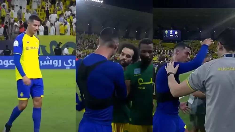 Роналду пообщался с игроками-соперниками, а одному подарил свою футболку. Но затем проявил агрессию.