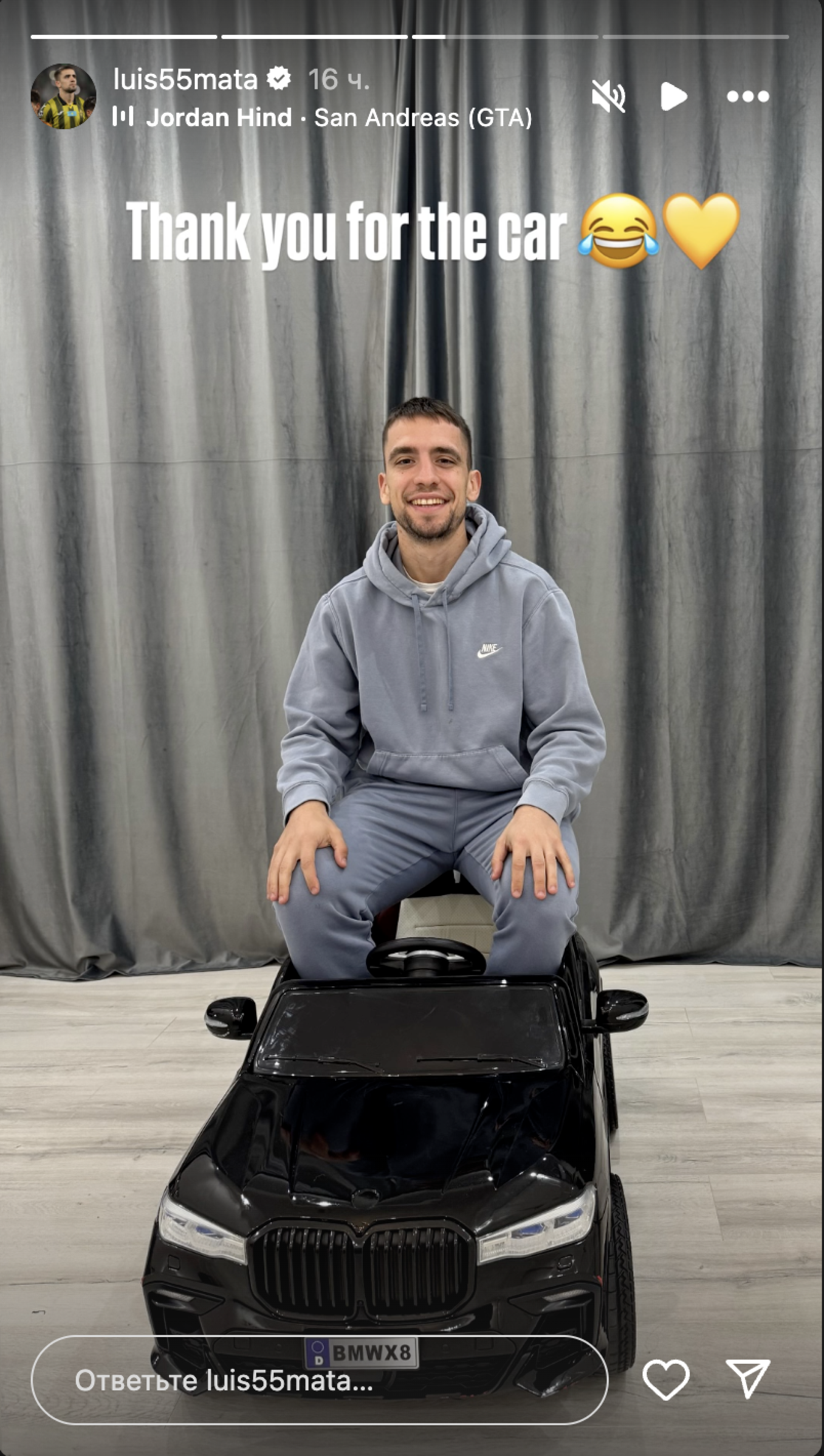 Португалец поделился фото с игрушечной машинкой в социальной сети Instagram, выложив сторис.