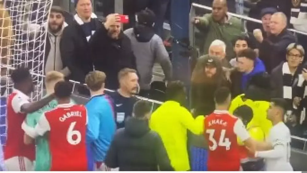Lifetime ban imminent for Spurs fan who kicks Aaron Ramsdale. Stupidity of the highest order. Not great from Richarlison either. pic.twitter.com/gHf8H9nUif