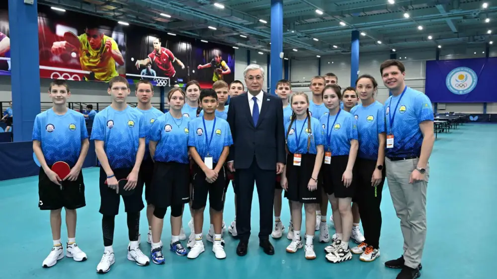 Касым-Жомарт Токаев подарил центру настольного тенниса автобус и пожелал юным спортсменам успехов.