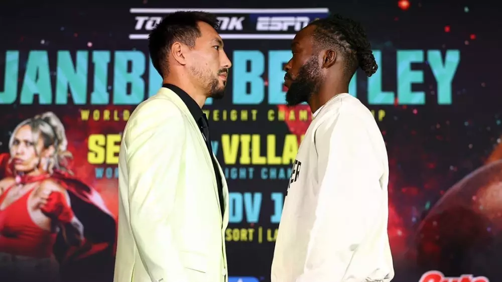 Казахстанский боксер-профессионал Жанибек Алимханулы (13-0, 8 КО) встретился с британским конкурентом Дензелом Бентли (17-2-1, 14 КО) после титульного поединка в США, передает Tengri Sport.