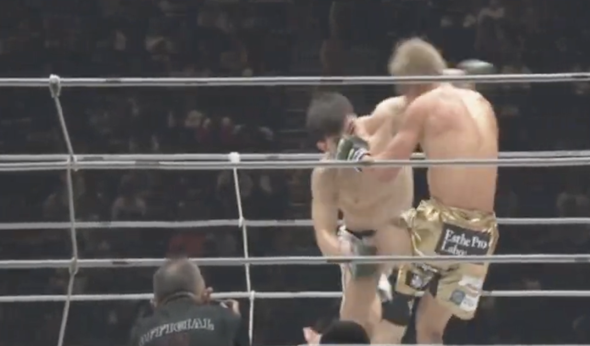 Схватка 32-летнего бойца из Казахстана против чемпиона лиги К-1 продлился чуть больше трех минут, после чего Каршыга упал на канвас и попросил врача.