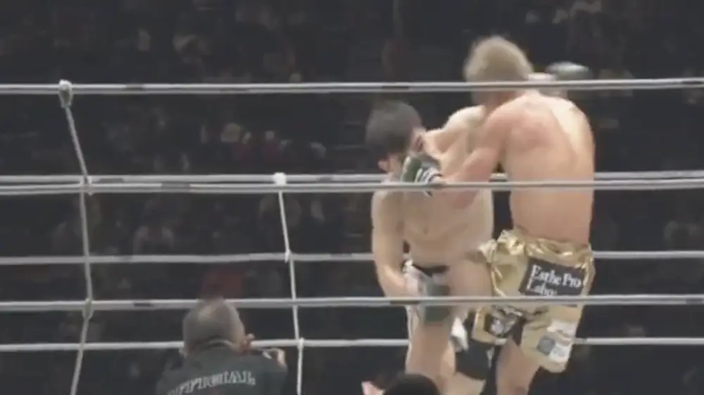 Схватка 32-летнего бойца из Казахстана против чемпиона лиги К-1 продлился чуть больше трех минут, после чего Каршыга упал на канвас и попросил врача.