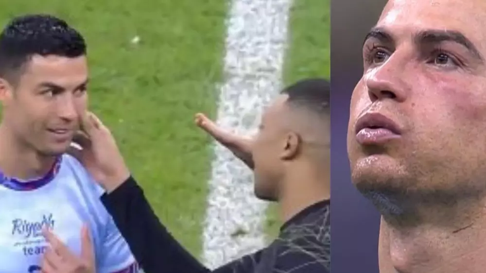 Португалец Криштиану Роналду оформил дубль за сборную звезд Саудовской Аравии в матче с "Пари Сен-Жермен", но игру завершил с заметным повреждением под глазом, передает Tengri Sport.