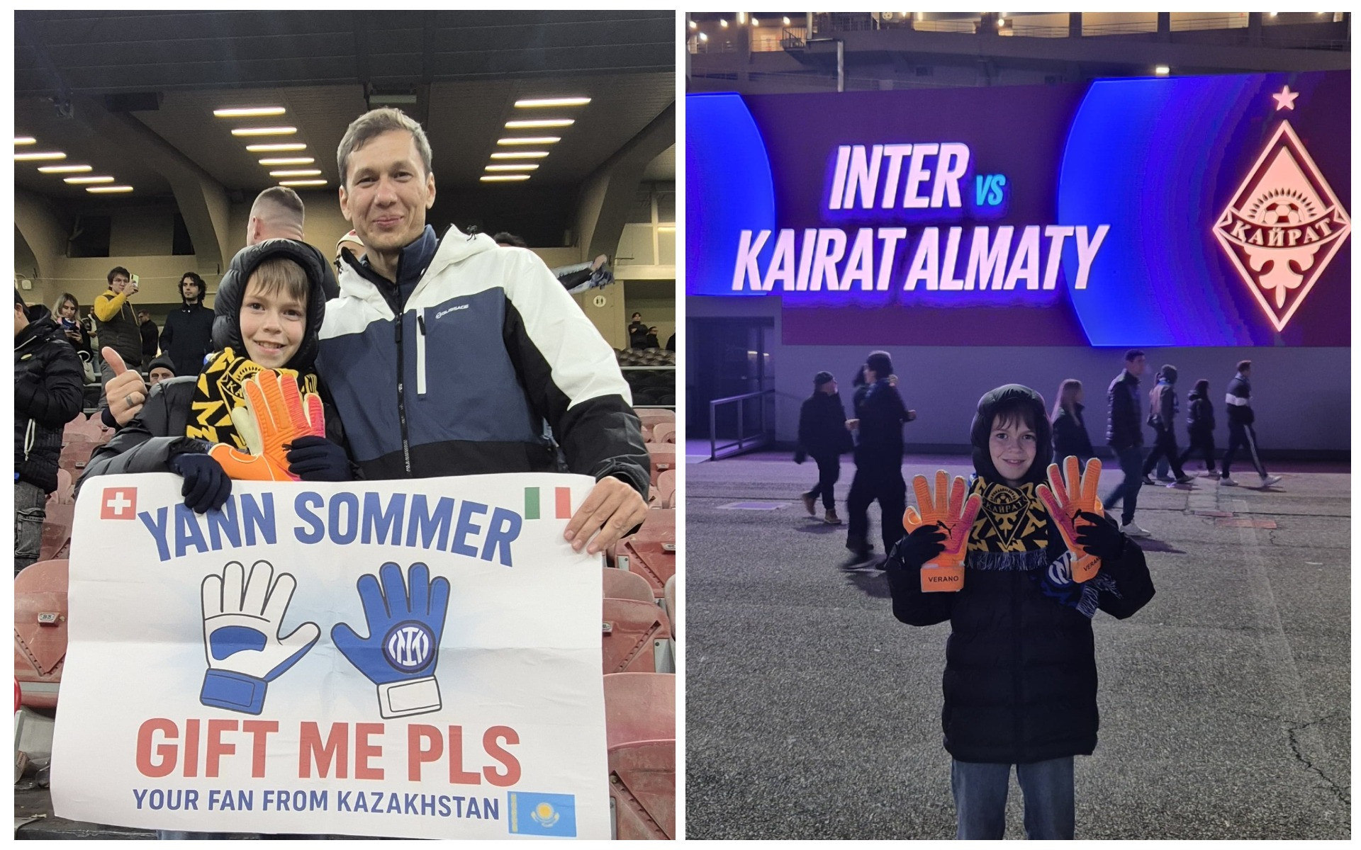 "Вратарь клуба "Интер" Ян Зоммер подарил перчатки, в которых играл против "Кайрата", моему сыну. Матч Лиги чемпионов, легендарный San Siro. Чудеса случаются. Сын сам занимается футболом и играет на позиции вратаря. А сами мы из Шымкента, выход "Кайрата" в ЛЧ подбил нас на поездку", - написал отец.