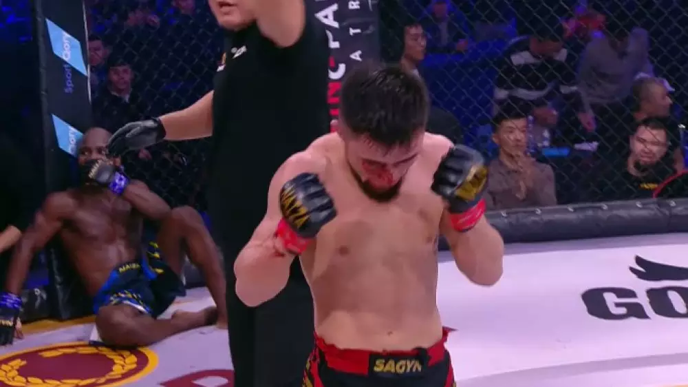 Бой состоялся в Актобе на турнире по смешанным единоборствам - NAIZA 48. Перед поединком Сагын и Шинк провели дуэль взглядов: казахстанец удивил британца, когда преподнес сопернику презент.