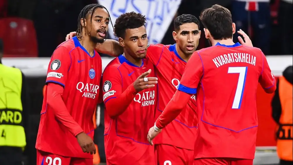 В следующем матче леверкузенский "Байер" принимал французский ПСЖ. У парижан голами отметились Вильян Пачо (7-я минута), Дезире Дуэ (41-я, 45+3-я минуты), Хвича Кварацхелия (44-я минута), Нуну Мендеш (50-я минута), Усман Дембеле (66-я минута) и Витинья (90-я минута). У хозяев Алеиш Гарсия успешно реализовал пенальти и забил один мяч с игры (38-я и 54-я минуты).