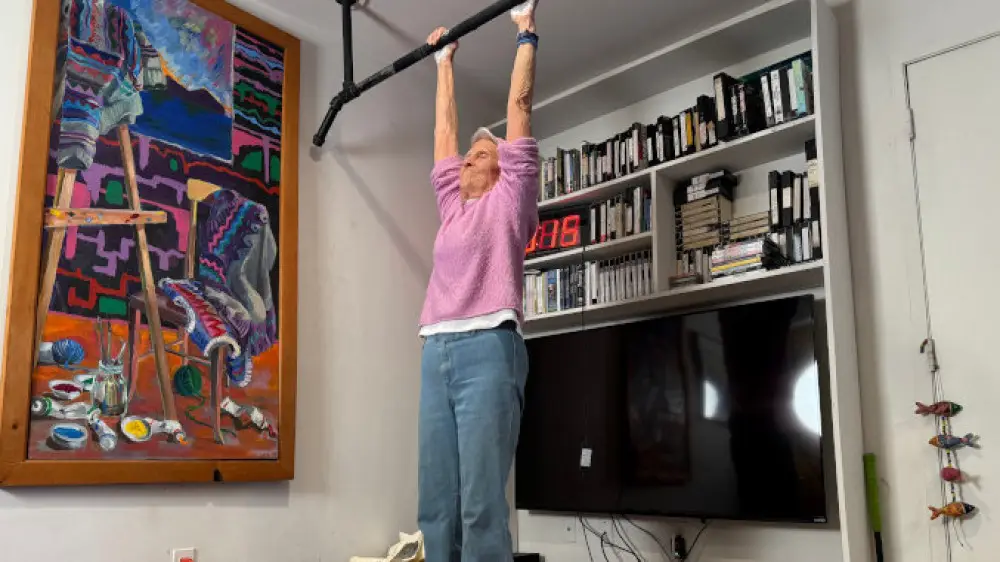 Она стала самой возрастной женщиной, удержавшей "мертвый вис" на перекладине.