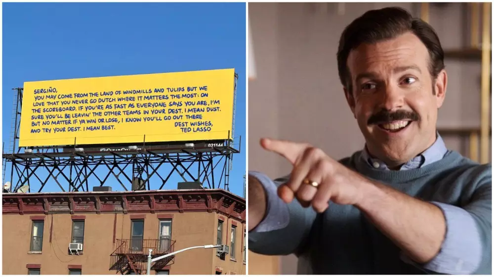 Популярный сериал "Тед Лассо" повествует о прекрасном мотиваторе, тренере-оптимисте по американскому футболу, который внезапно возглавил клуб "Ричмонд" из английской Премьер-лиги. На фоне успешности картины в разных уголках США решили разместить билборды с письмами Лассо игрокам команды.