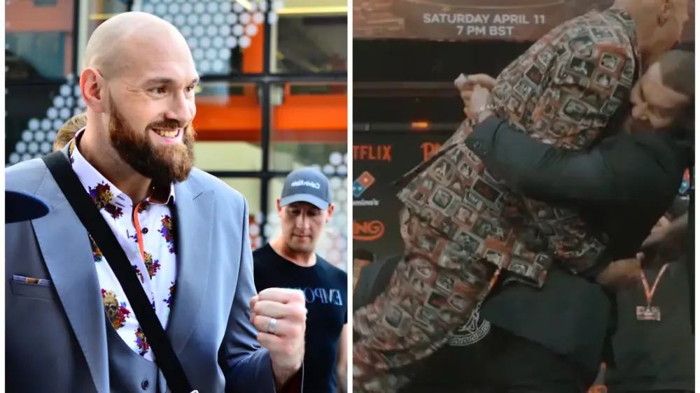 Встреча британского боксёра Тайсона Фьюри со своим будущим соперником Арсланбеком Махмудовым закончилась тем, что супертяжеловес из Великобритании взлетел в воздух, передаёт Tengri Sport.