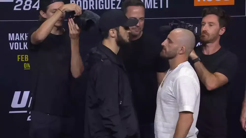 Российский боец Ислам Махачев (23-1) и австралиец Александр Волкановски (25-1) провели дуэль взглядов перед боем на турнире UFC 284, передает Tengri Sport.