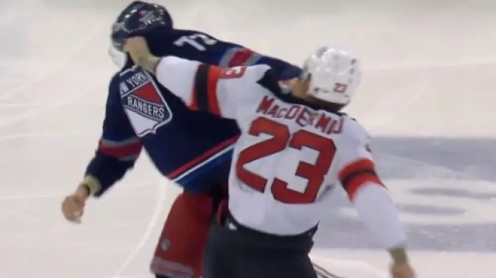 Массовая драка произошла в матче регулярного чемпионата Национальной хоккейной лиги (НХЛ) между "Нью-Йорк Рейнджерс" и "Нью-Джерси Дэвилз", передает Tengri Sport.