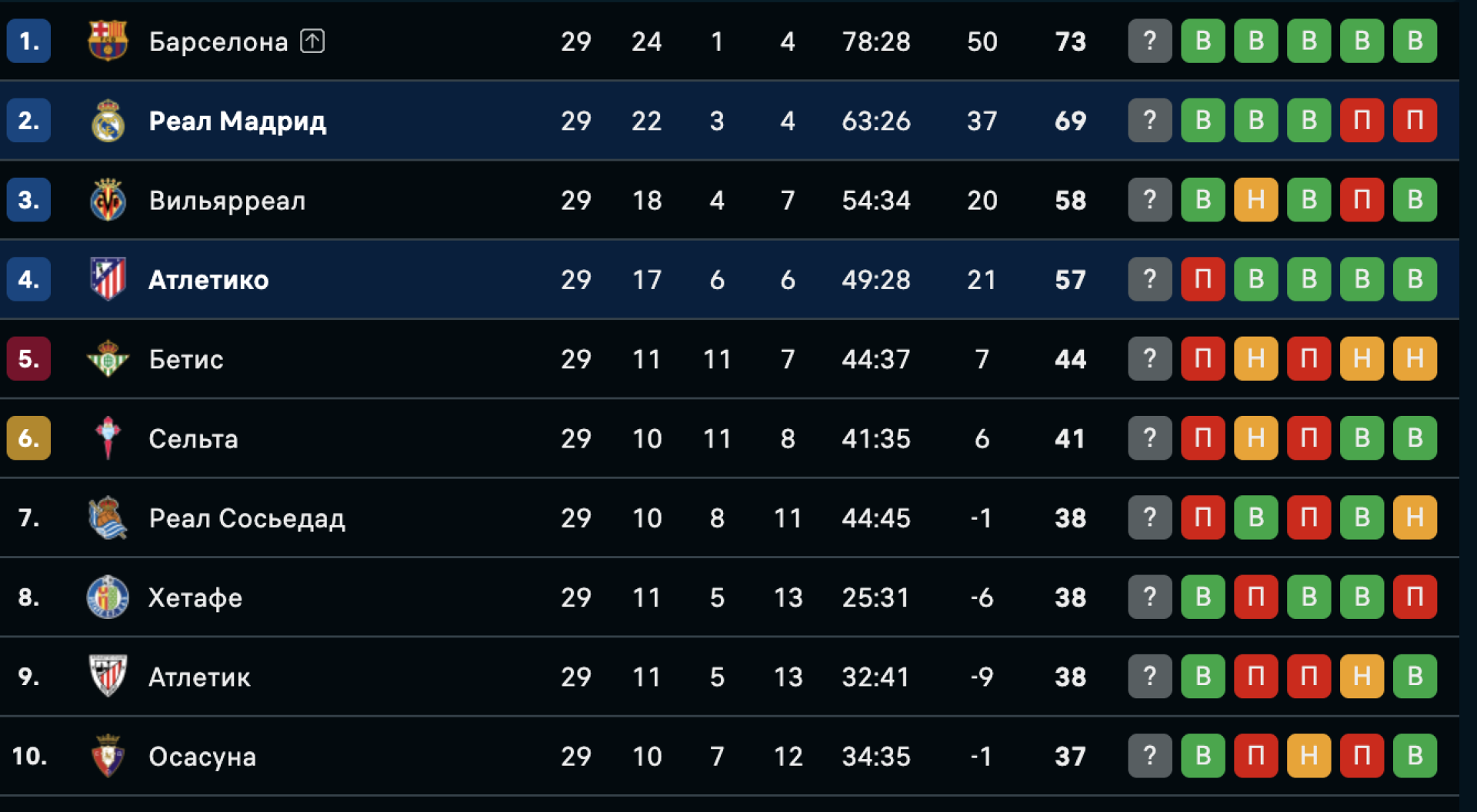 После победы "Реал" (69) сохранил отставание от "Барселоны" (73) на 4 очка.