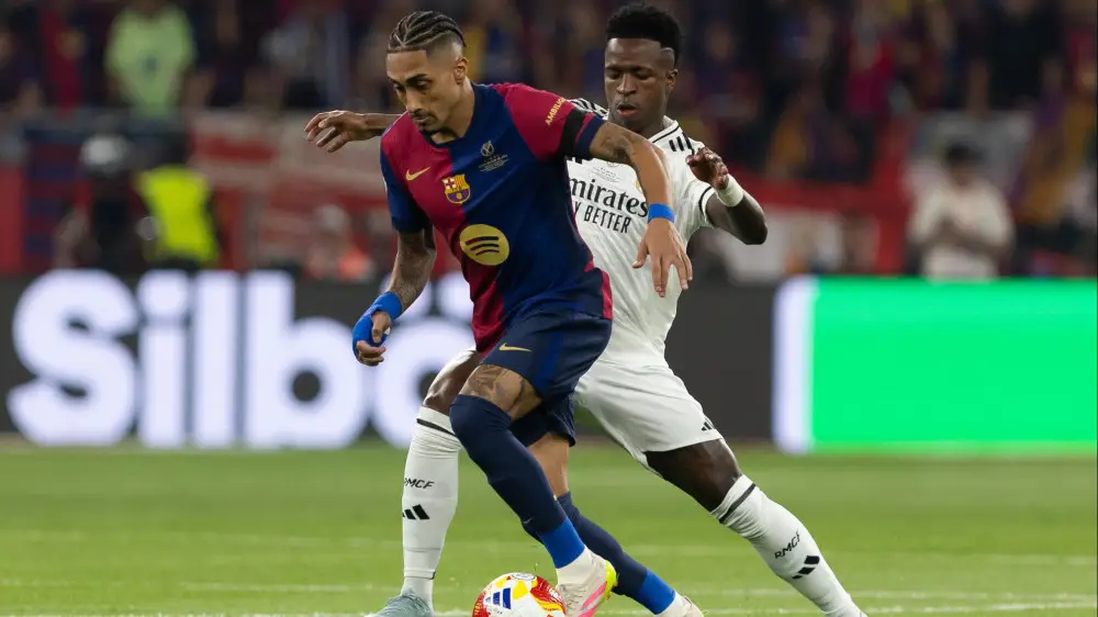 Словесный конфликт зародился между двумя бразильскими вингерами: Рафиньей из "Барселоны" и Винисиусом из "Реала".